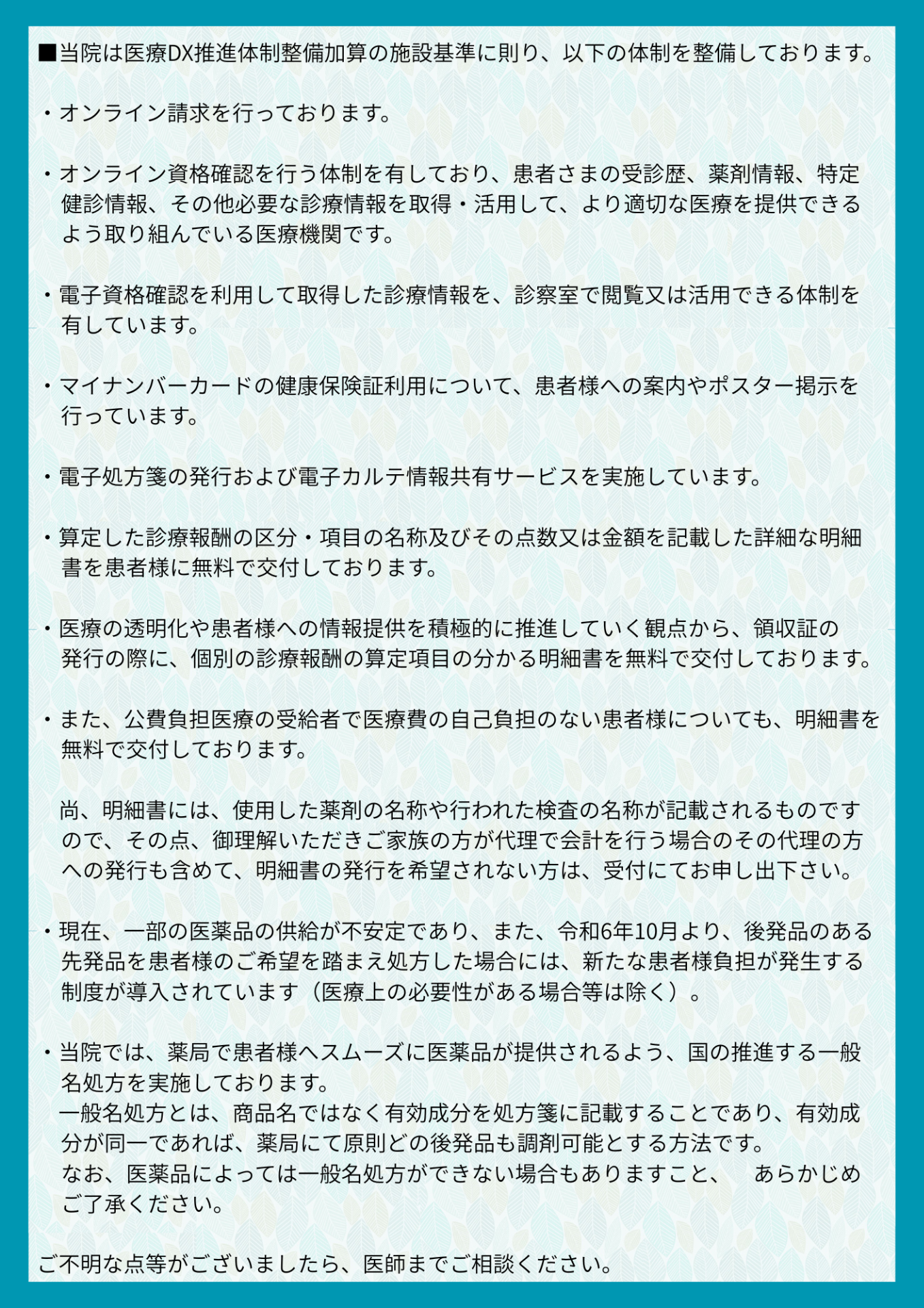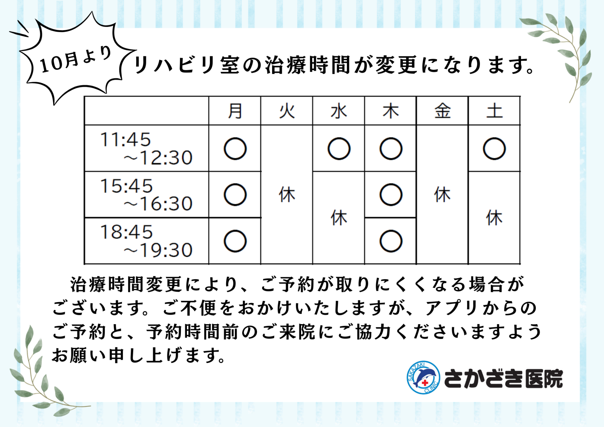 治療時間変更により、ご予約が取りにくくなる場合がございます。